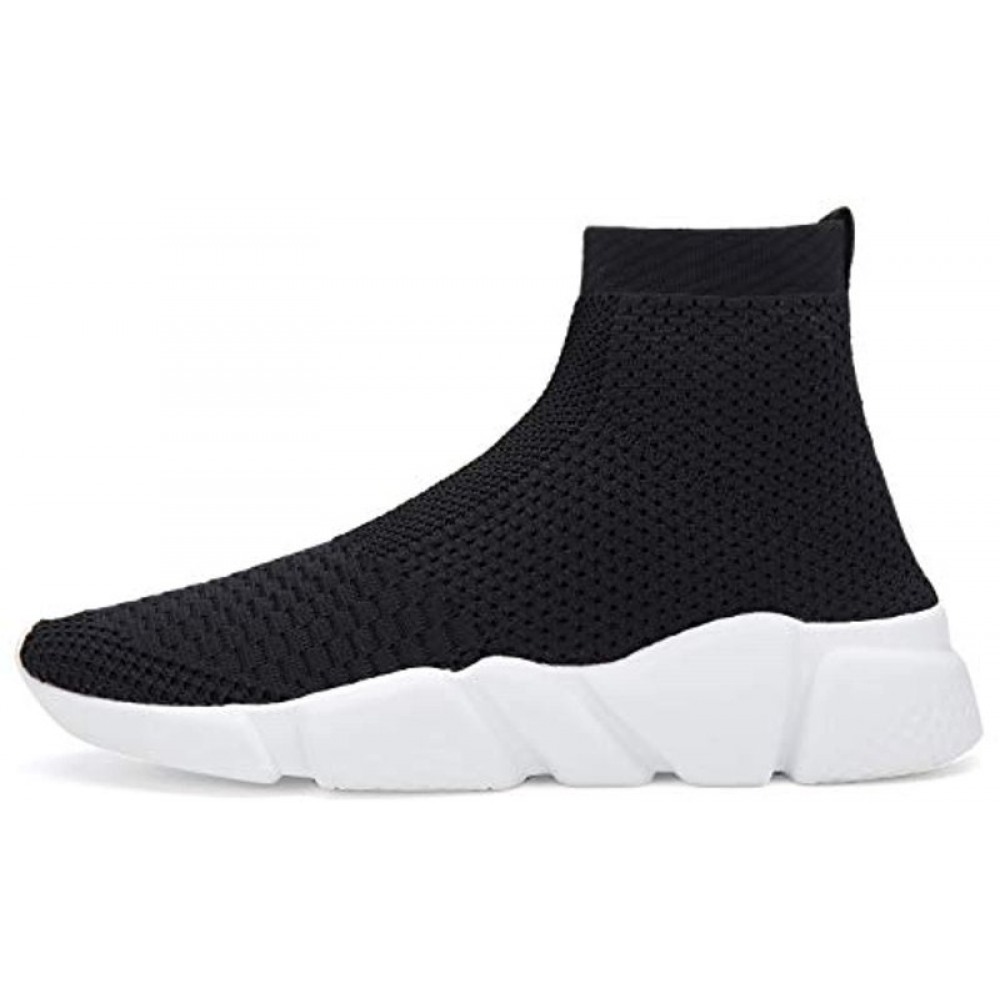 Men's Running Shoes Breathable Knit Slip On Sneakers Lightweight Athletic Casual Shoes Black