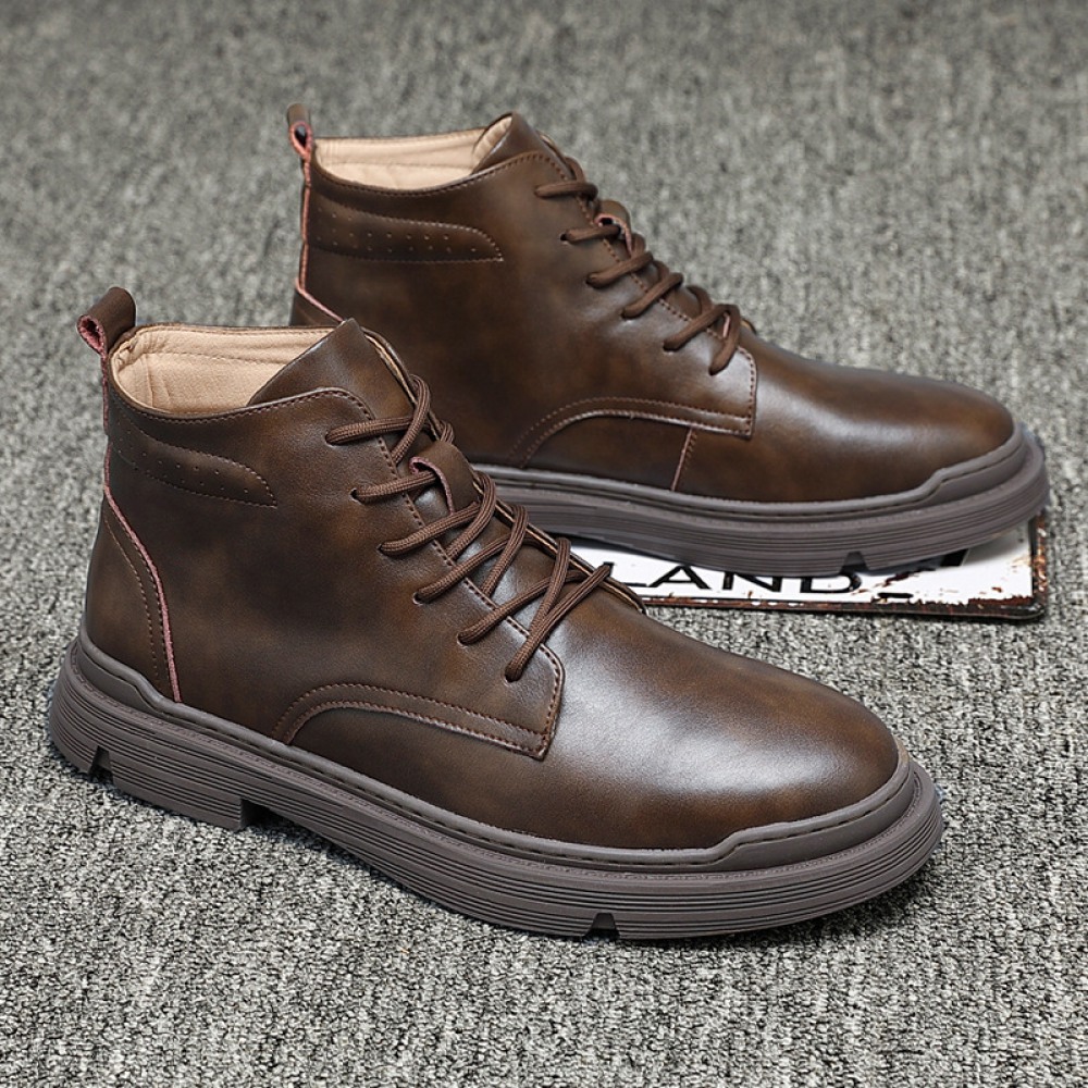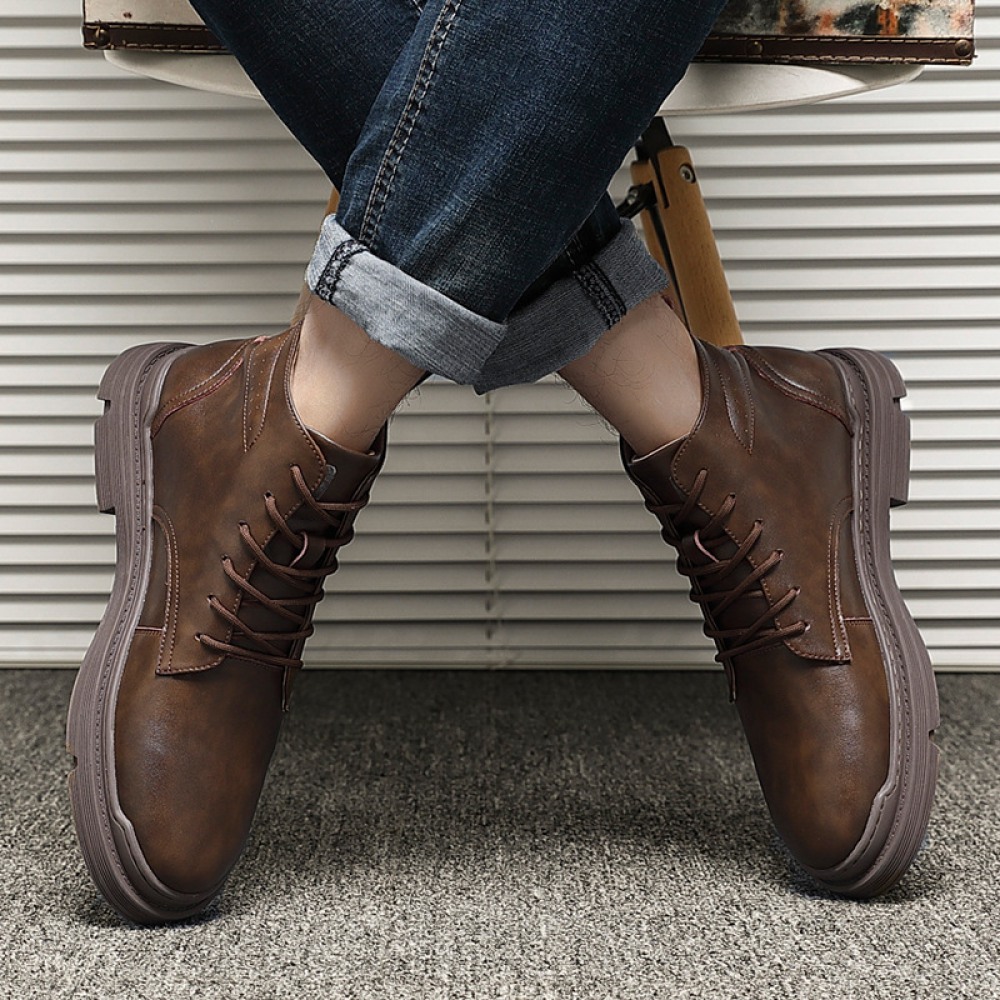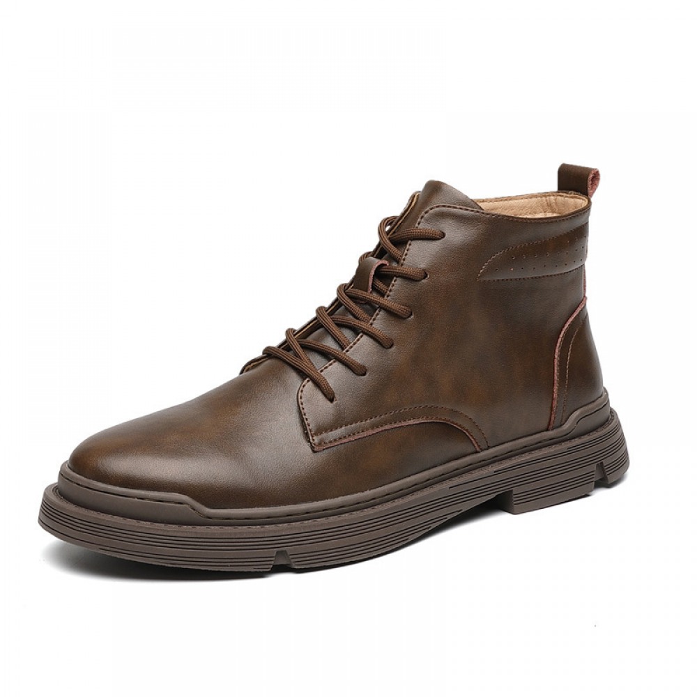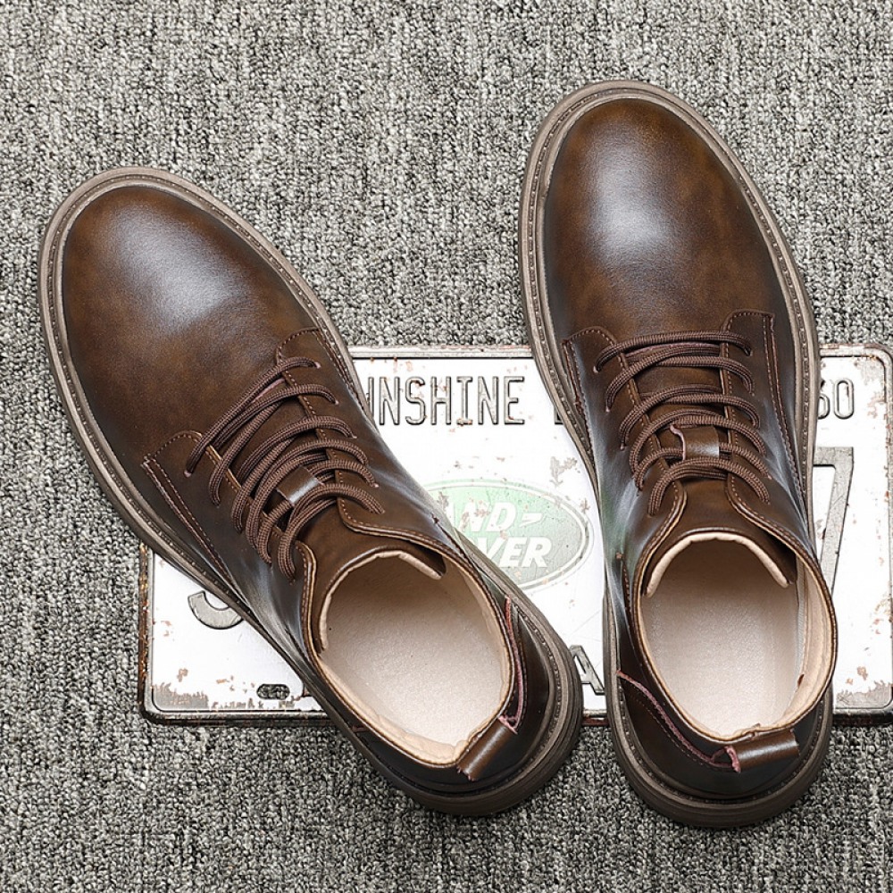 Men's Leather Mid-Top Boots High-Top Casual Shoes Increased Martin Boots Black