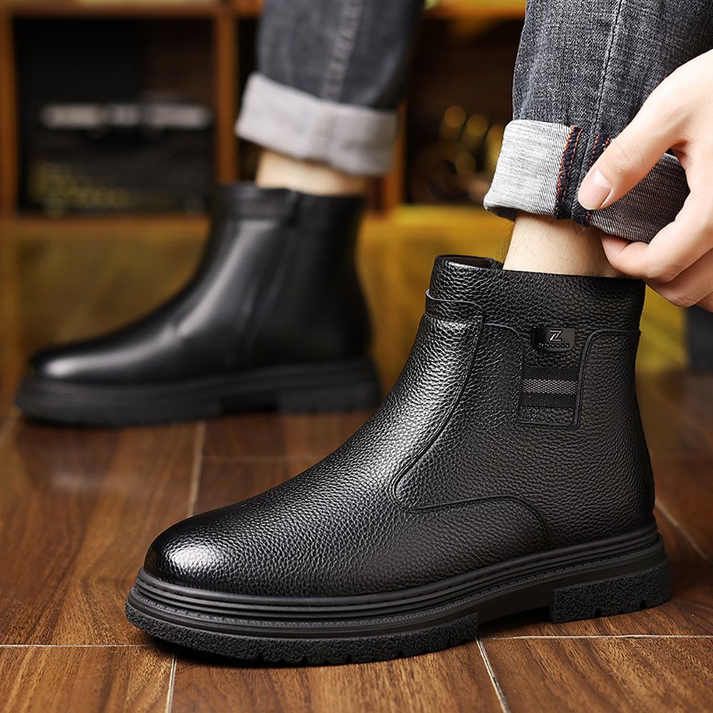 Men's Cotton Shoes High-Top Wool Warm Boots Leather Plus Suede Shoes