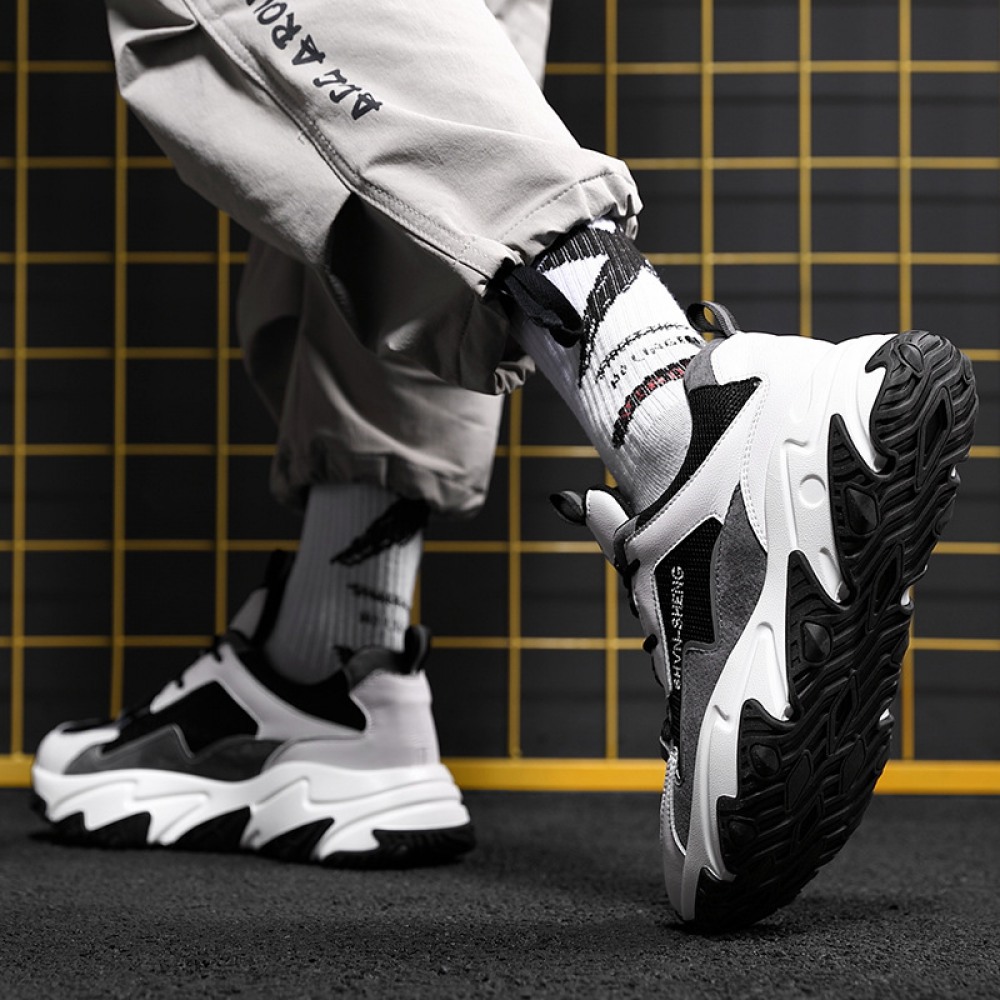 Men's Non Slip Gym Sneakers Lightweight Breathable Athletic Running Walking Tennis Shoes Black-White